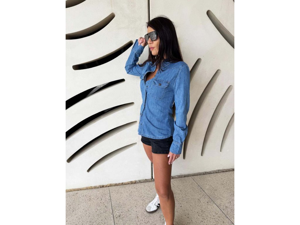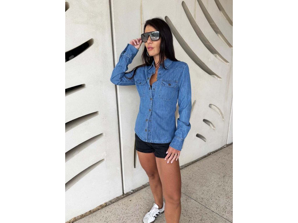 Dámská riflová košile z jemné džínoviny s vypasovaným střihem, který krásně zvýrazní postavu.