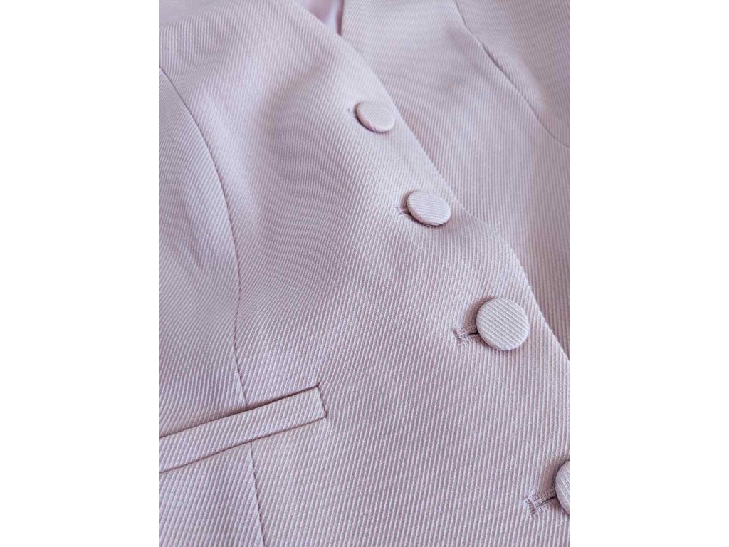 Dámská vesta s podšívkou ve světle růžové barvě pro jemný a ženský vzhled. Stylový doplněk, který pozvedne každý jarní nebo letní outfit. Lehce vypasovaná.